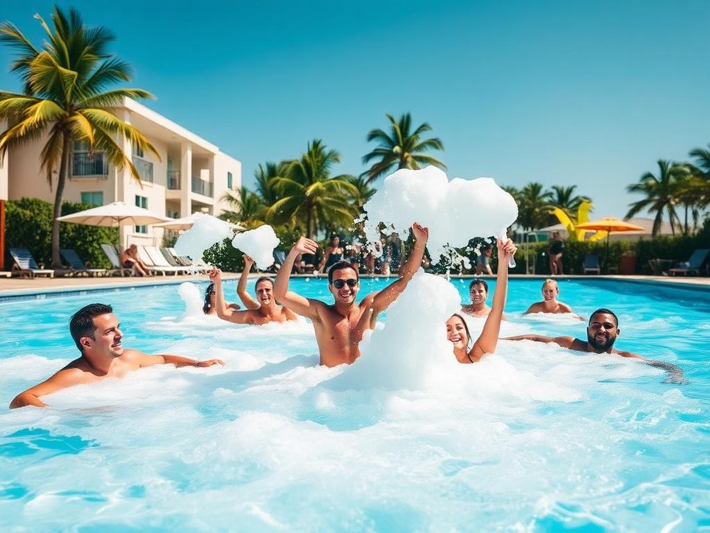 Кроме эмоционального эффекта, пена добавляет элемент игры: спрятаться, вынырнуть, устроить конкурсы и танцы в необычной среде. Такое взаимодействие отличается от обычной вечеринки у бассейна тем, что внимание сосредоточено не только на воде и музыке, но и на самой атмосфере, которую создает пена.